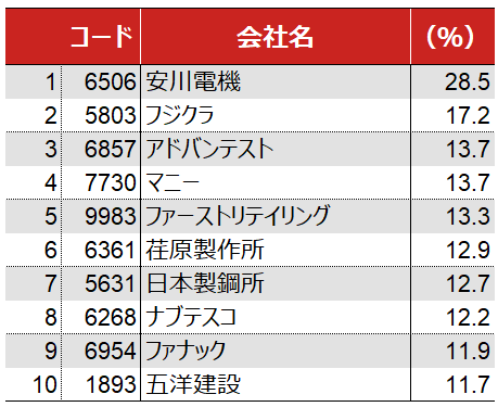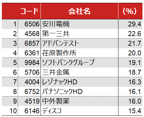 (注)対象はTOPIX500、直近値は2025年10月10日。