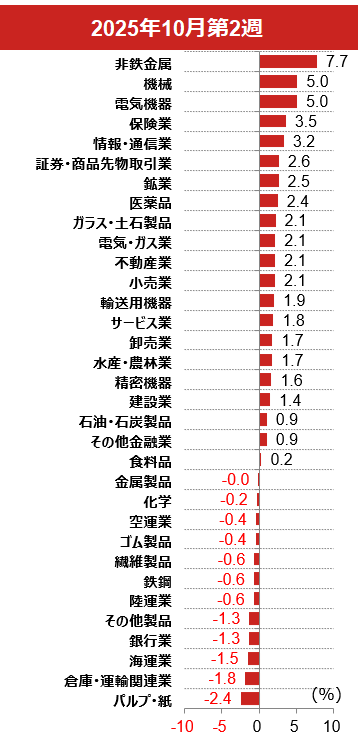 (注)業種分類は東証33業種ベース。直近値は2025年10月10日時点。