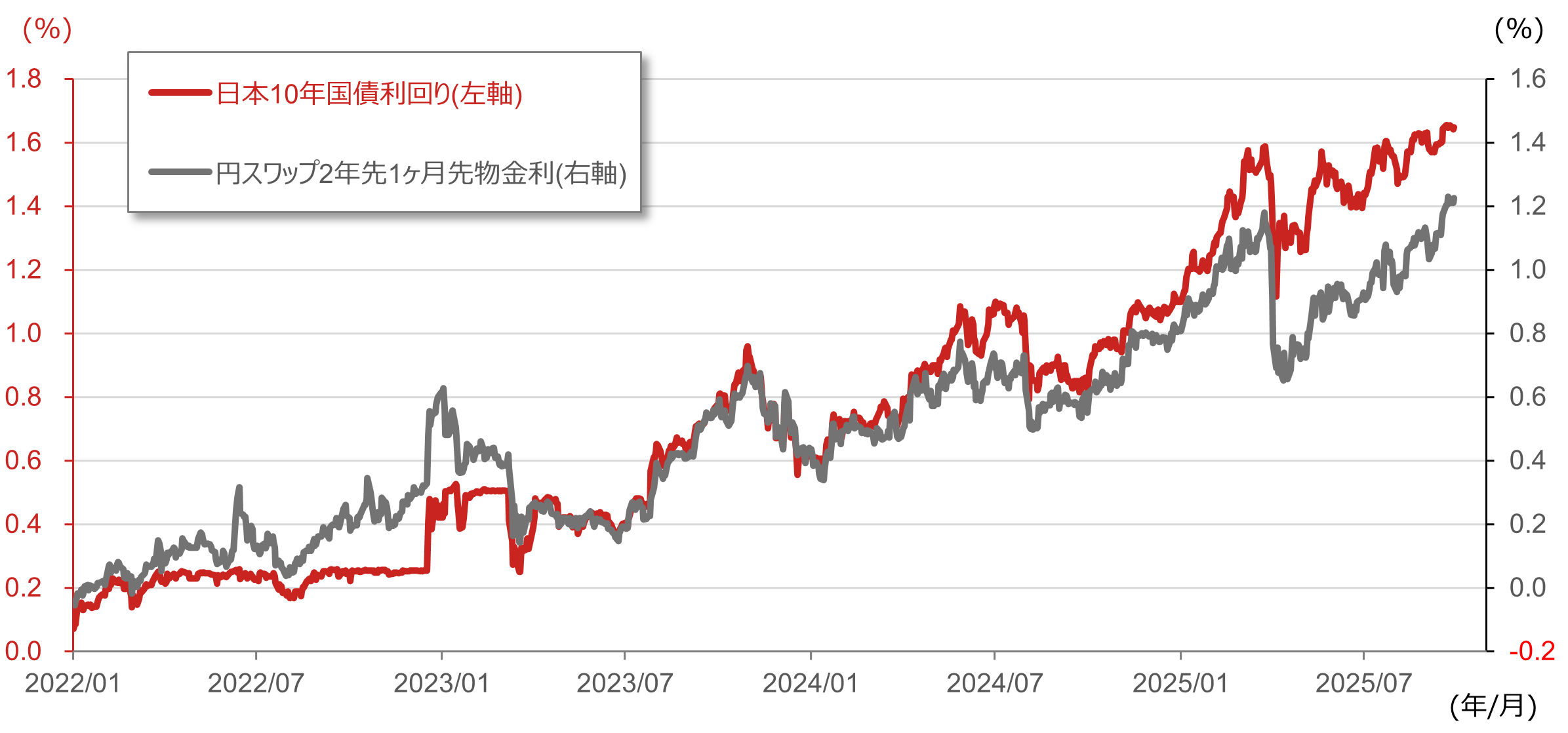 (注)データは日次で、直近値は2025年9月29日。円スワップ金利は2年先1ヶ月先物金利で市場の政策金利見通しを示唆するものとして注目度の高い利回り。