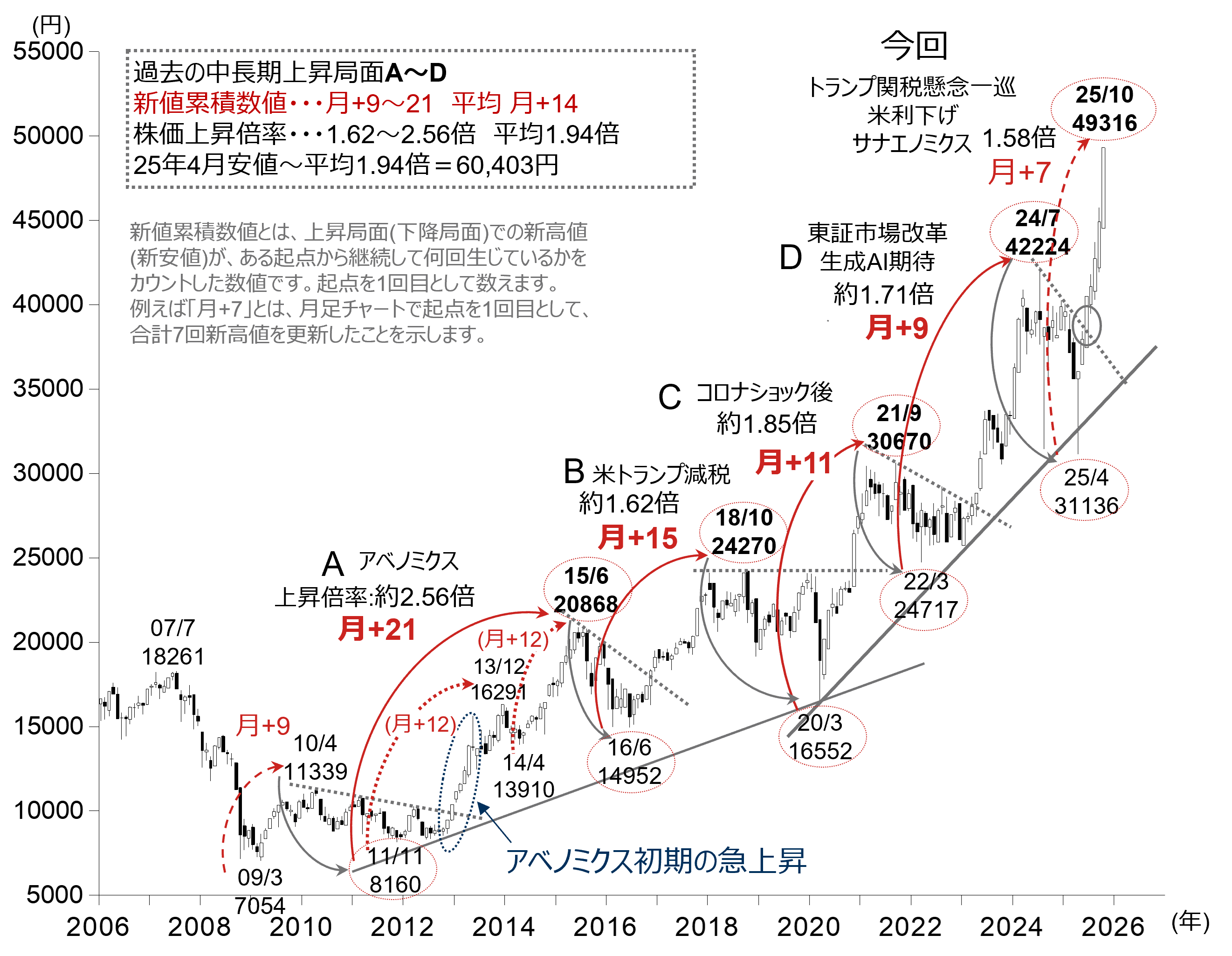 【特集】日経平均月足×新値累積数値:高値更新回数が示す上値の可能性