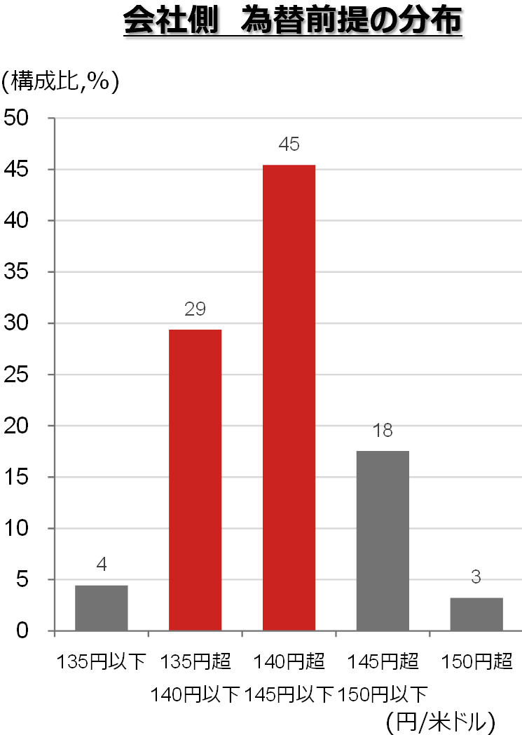 (注2)下図は、2025年9月30日時点の会社側の2025年度米ドル円レート前提。母集団は前提を公表している全上場企業。