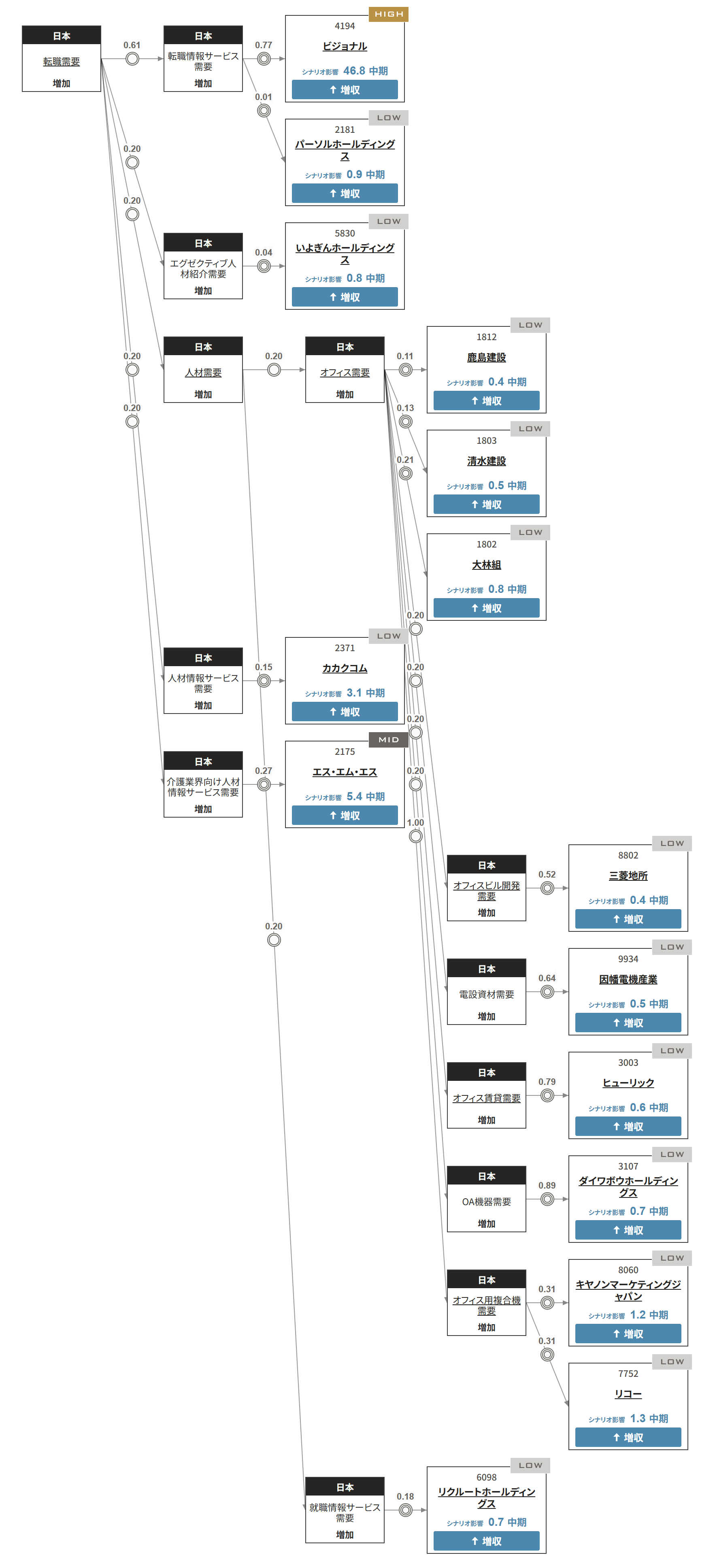 賃上げの広がりやリスキリングの加速、働き方の多様化などを背景に、人材の流動性が高まっています。こうした流れの中で、新年度に向けた転職活動が本格化しつつあります。転職市場が拡大すると、どのような企業に影響が及ぶのでしょうか。AI「xenoBrain」は、「転職需要増加」が他のシナリオにも波及する可能性を考慮し、影響が及ぶ可能性のある15銘柄を選出しました。